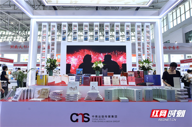 步入湖南展馆,位于展馆中央的精品图书展台尤为瞩目。半通透式书墙前,中南传媒带来的百种新书精品在此集中陈列,以主题出版、重大文化工程的产品为重点,涵盖文学、艺术、社科、少儿、科普等多个板块。