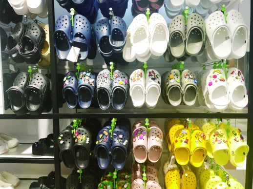 在长沙一商场,摆放着各种款式的洞洞鞋。
