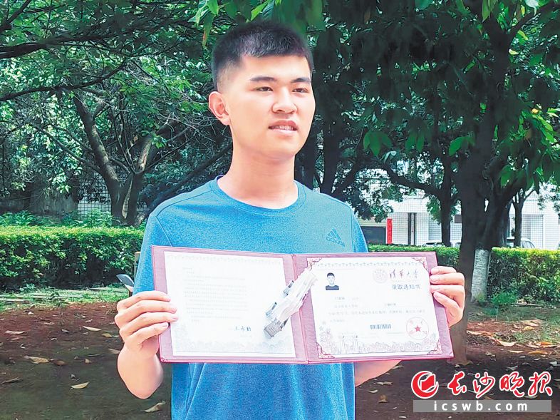 刘家瑜展示清华大学录取通知书。长沙晚报通讯员 唐艳 摄