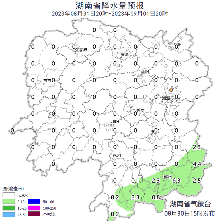 3.关注9月1日晚湘南局地较强降雨可能诱发的山洪地质灾害、城市内涝等次生灾害。