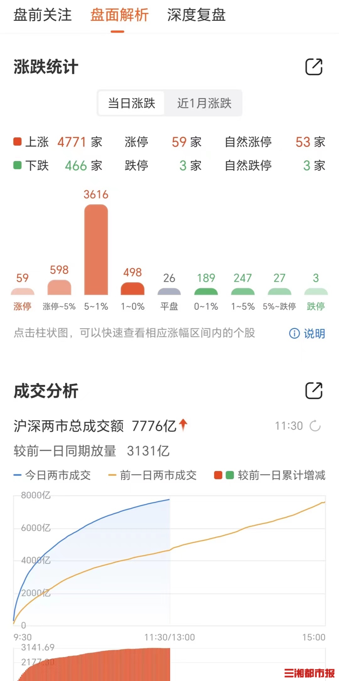 总体来看,个股呈现普涨态势,两市4700多股飘红,下跌个股仅400余只。