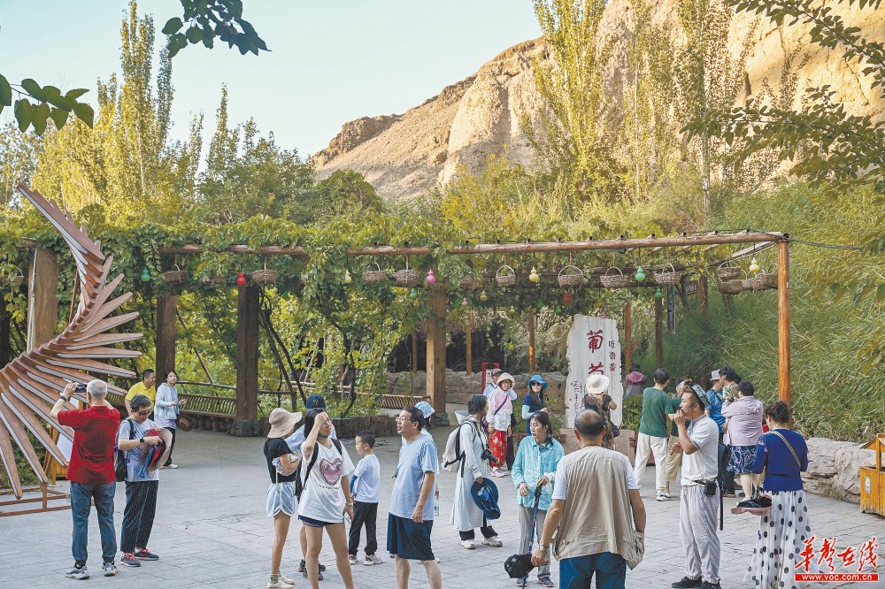 8月20日,游客在吐鲁番市葡萄沟景区游玩。作为“一带一路”重要的旅游目的地,吐鲁番打造出“葡萄+”多样生态旅游项目。