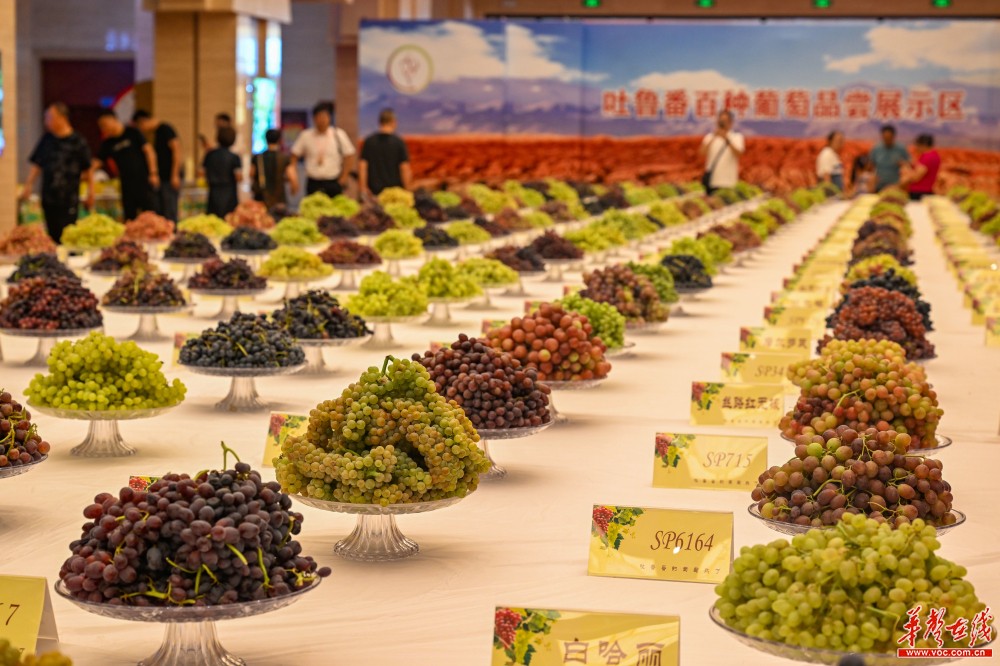 8月19日,吐鲁番市国际宝玉奇石文旅博览中心,第二十九届丝绸之路葡萄节上的“葡萄盛宴”。