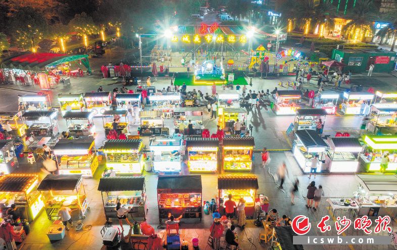 夜幕降临,位于中海环宇城广场门口的融城夜市开始热闹起来。 长沙晚报全媒体记者 刘晓敏 摄