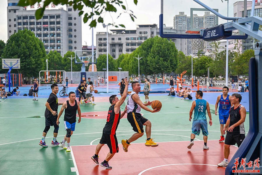 8月2日傍晚,永州市体育中心全民健身广场即景。