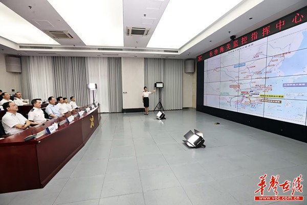 (毛伟明在长沙海关监控指挥中心,了解平台建设和智慧监管等工作。)