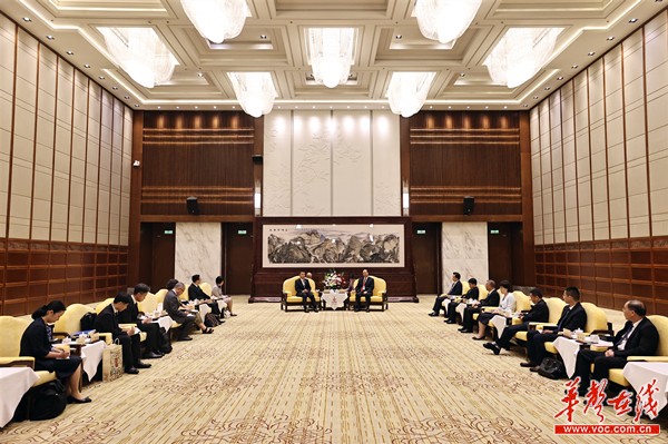 (8月1日,省委副书记、省长毛伟明在长沙会见日本滋贺县知事三日月大造一行。)