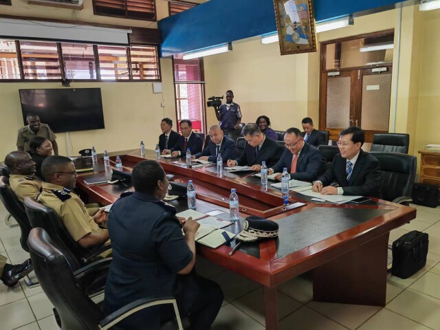 (9月12日下午,王一鸥与马拉维警察总监约拉姆会晤交流。通讯员 摄)