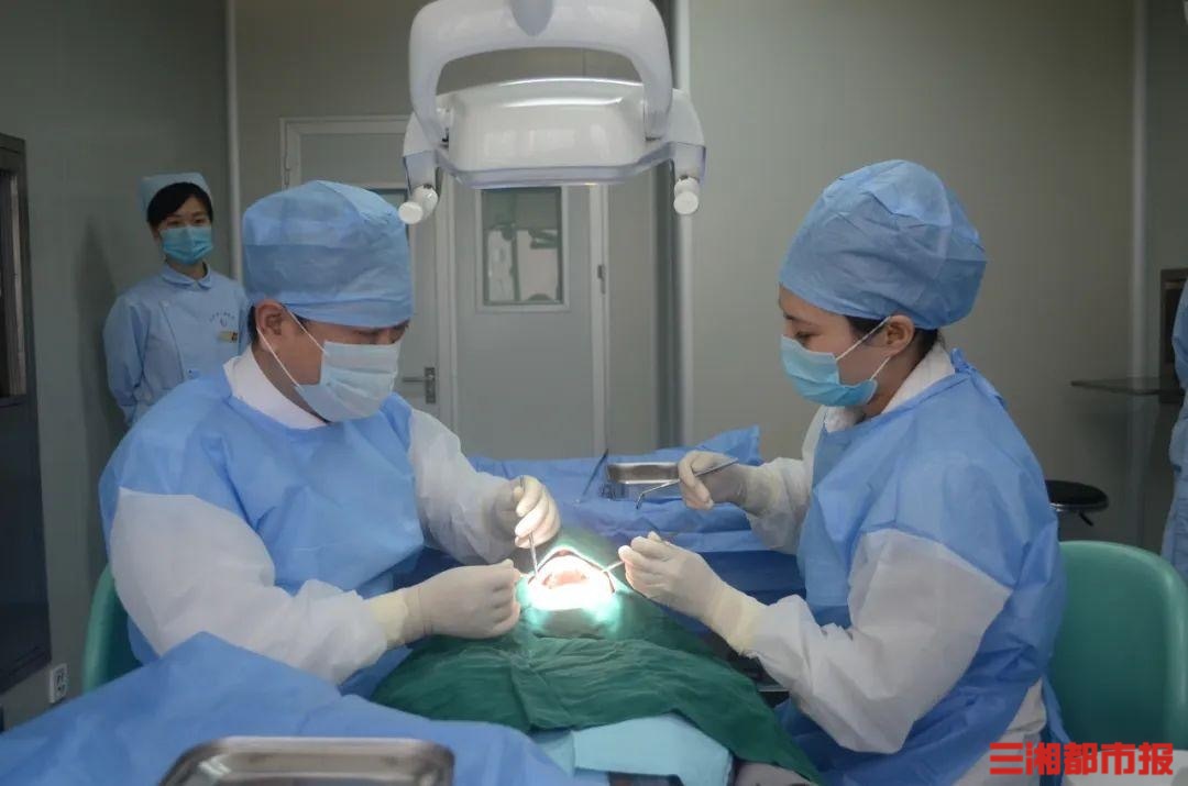 (长沙市口腔医院医生在进行口腔治疗。)