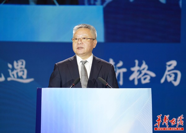 沈晓明代表省委、省政府向出席大会的各界嘉宾表示欢迎,对大家长期以来对湖南发展的关心支持表示感谢。他说,湖南和台湾两地人缘相亲、文缘相承、商缘相连,近年来以湘台会为桥梁纽带,两地交流越来越频繁、合作越来越密切、成果越来越丰硕。当前,湖南正锚定习近平总书记描绘的“三高四新”美好蓝图,大力推动高质量发展,区位优势日益凸显,产业潜能加速释放,创新活力竞相迸发,营商环境持续优化,为更多台胞台企来湘投资兴业提供了广阔空间和良好机遇。本届湘台会以“把握新机遇,融入新格局”为主题,就是希望充分发挥湘台两地各自优势,相向而行、携手并进,加快融入新发展格局,共同促进高质量发展,推动两岸融合发展的康庄大道越走越宽广。湖南将以本届大会为新起点,更好促进湘台交流合作,为共创中华民族绵长福祉、共享民族复兴伟大荣光贡献湖南力量。