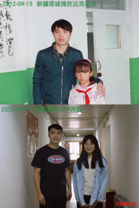 (上图:11年前两人合影。 下图:11年后两人合影。)