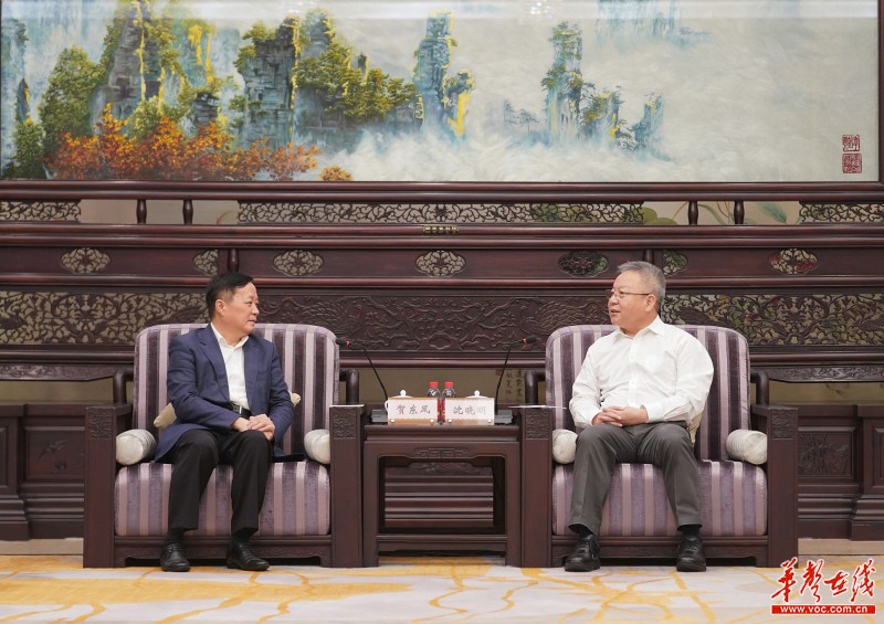 (9月21日,沈晓明在长沙与中国商用飞机有限责任公司党委书记、董事长贺东风一行会谈。)