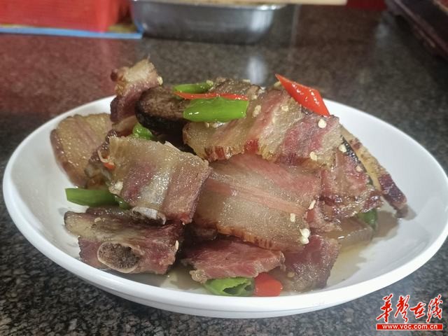 “秋风起,食腊味”,一入秋冬,新化人民会熏制腊肉。柴火腊肉以本土优质的猪肉为原料,配以适当的盐、酱油、味精、香料等香料,并利用柴炭火熏烤30—40天而成。