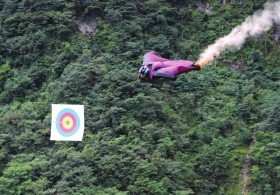为了精准地穿过靶标,参赛选手以200公里的时速紧贴着崖壁向下俯冲后,还要克服风力造成的靶标摇晃等问题,在空中及时调整身体姿态,以击穿靶标,这对选手翼装飞行和空中姿态的调整能力要求颇高。选手穿靶后,若击中靶心,获90分,脱靶则不得分。