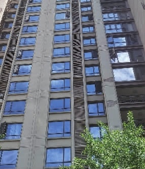 长沙市岳麓区梅溪湖一小区第8栋、9栋两栋楼的外墙脱落严重(见红圈)。