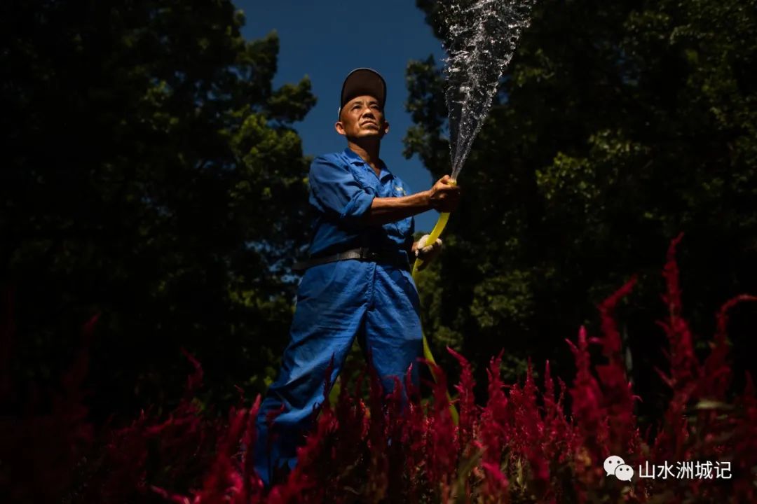 湖南烈士公园,工人在烈日下养护公园树木花卉。黄启晴 摄