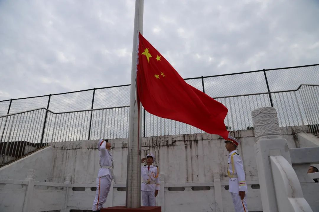 国旗随着嘹亮的国歌冉冉升起,全体师生注目敬礼,望朝阳升起,仰红旗飘扬,承心愿光火,继砥砺前行。