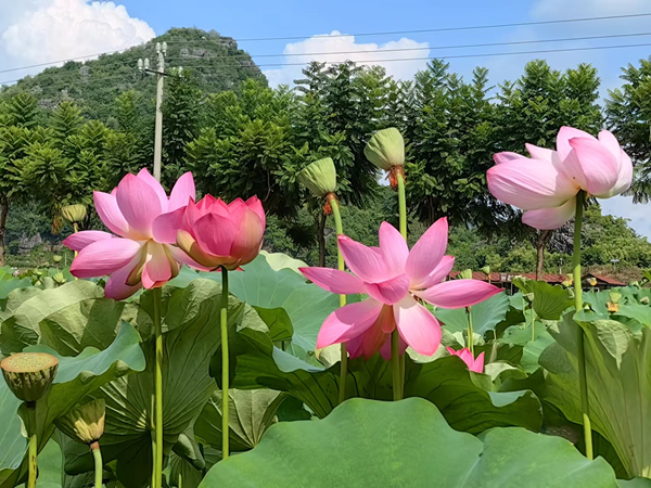 如果说水是普者黑的底色,那随处可见的蓬蓬勃勃云样的荷,就是涂抹在底色上的色彩斑斓。