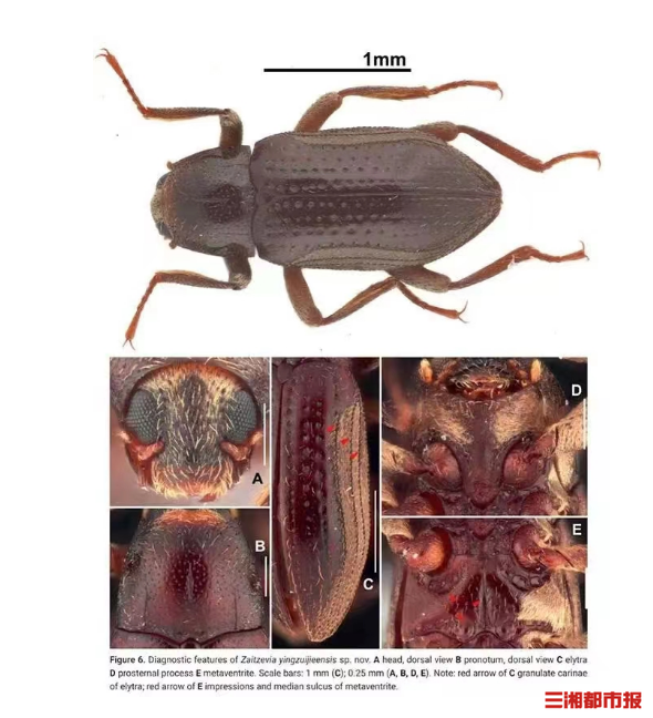 据科考专家介绍,到目前为止,寥溪泥甲属在我国记录有12种。鹰嘴界寥溪泥甲的发现,结束了湖南该属零记载历史,不仅丰富了该保护区的物种多样性,同时对溪泥甲科昆虫系统学与进化研究具有重要意义。