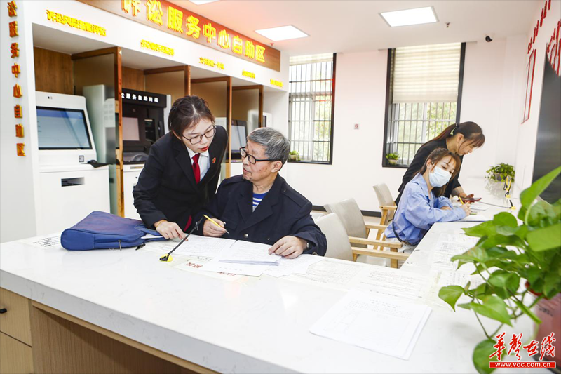 (宁乡法院诉讼服务中心法官在指导群众填写诉讼文书 蒋晓红摄)