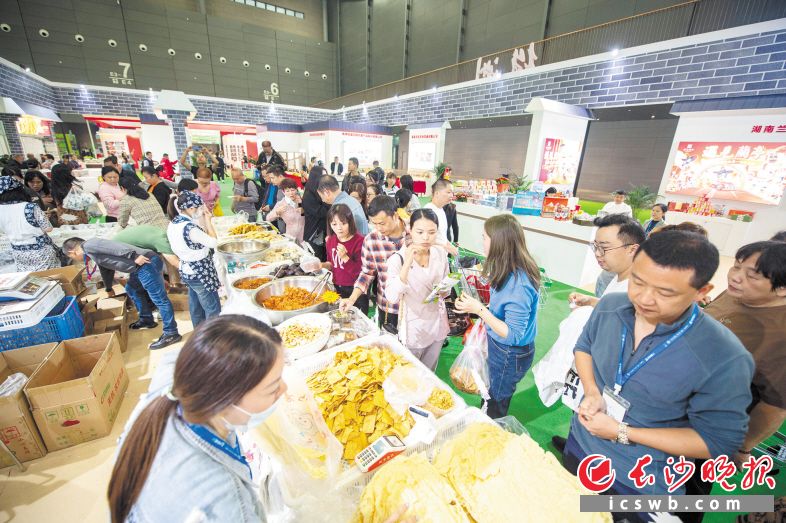 第二十四届中国中部(湖南)农业博览会湖南市州·美食馆里,游客们正在品尝美食。长沙晚报全媒体记者 黄启晴 摄