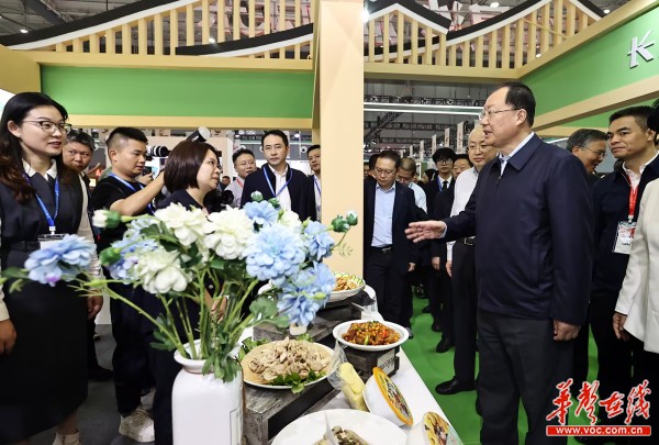 宁乡花猪、湘潭湘莲、衡阳茶油、十八洞猕猴桃……此次农博会上,“湘”字号农特产品展销红火,深受群众青睐。来到县域主题展区、湖南市州美食馆14市州展区以及长沙县预制菜展区等,毛伟明一路走一路看,为品类繁多的特色农产品“点赞”。他说,要充分发挥“湘材”“湘菜”“湘味”优势,不断延伸农业产业链条、增加农产品附加值,提升预制菜产业化、规范化、绿色化水平,切实守护好人民群众“舌尖上的安全”。