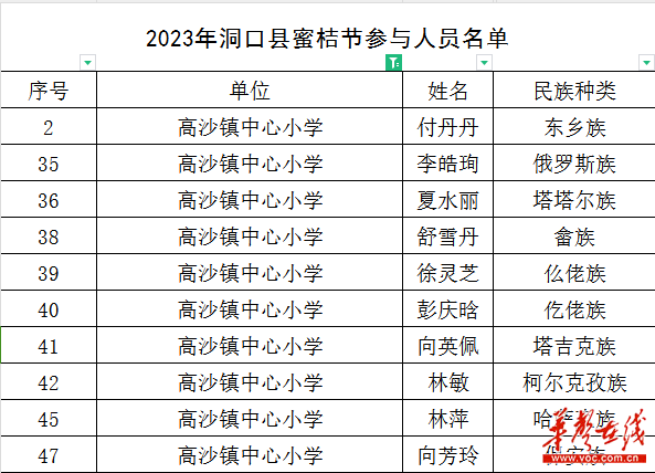 高沙镇中心学校参与“蜜桔节”文艺汇演教师名单