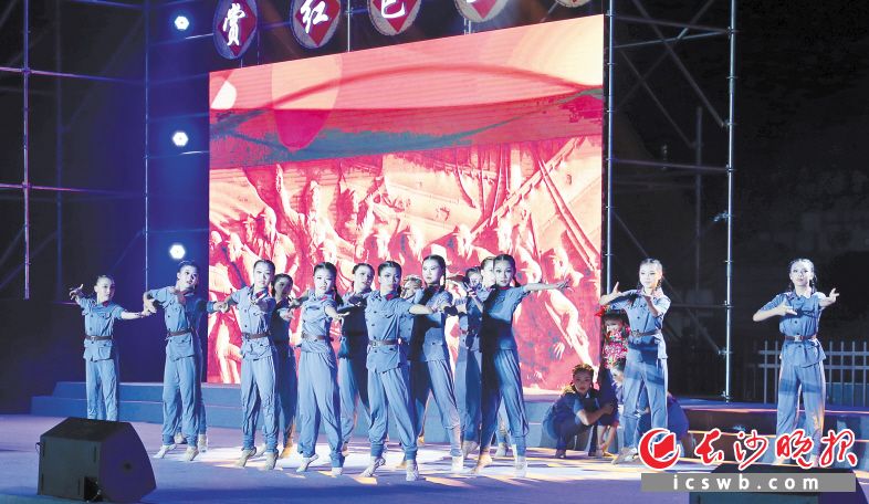 “嗖嗖嗖……”五彩缤纷的烟花在空中绽放,歌舞《红色文家市》、花鼓戏歌《西江月·秋收起义》、情景演绎《秋收起义歌》等红色大剧,赢得了在场观众的阵阵喝彩。