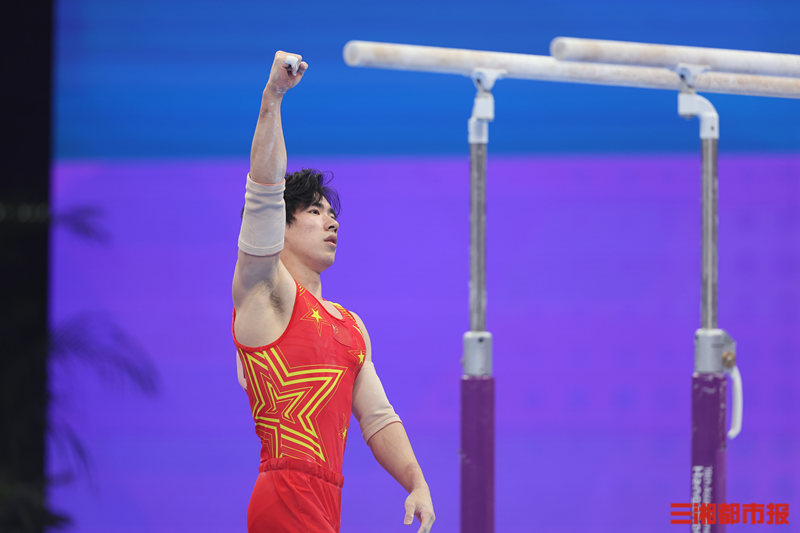 (9月24日,湖南“小骄傲”、长沙伢子张博恒助力中国体操夺杭州亚运会团体金牌。记者 刘丰 摄)