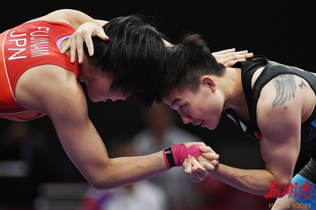 华声在线杭州10月5日电(记者 蔡矜宜 陈普庄)在刚刚结束的杭州亚运会摔跤女子自由式53公斤级决赛中,湖南运动员庞倩玉以0比10不敌世锦赛冠军、日本名将藤波朱理,收获一枚银牌。