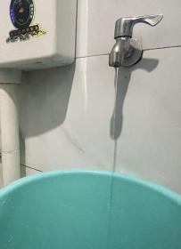 李女士门店的洗漱区域,把水龙头开最大,出水量仍然很小。