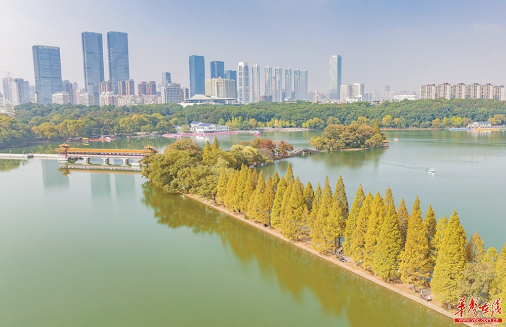 11月14日,被称作长沙城“绿肺”的湖南烈士公园年嘉湖畔色彩斑斓。初冬时节,一株株银杏、水杉、乌桕等古树名木姹紫嫣红,与园林碧水、城市宇等交相辉映,渲染一幅迷人画卷。华声在线全媒体记者李健 摄