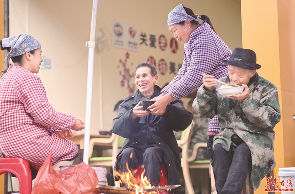 11月12日,通道侗族自治县双江镇城中社区“长者食堂”,两位老人在就餐。今年,该县积极探索社区养老新模式,依托临街饭馆、社区驿站等场所建设多个小微“长者食堂”,对年满60周岁以上的老年人减免部分餐费,让老人在家门口吃上“暖心饭”。