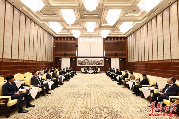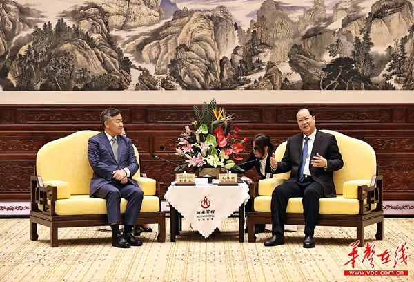 毛伟明对韩国客人的到来表示欢迎并简要介绍湖南省情及经济社会发展情况。他说,中韩两国地缘相近、文缘相通、人缘相亲。近年来,湖南与全罗北道交往日益密切,在文化旅游、科技教育、青少年交流等领域成果丰硕。当前,湖南正锚定“三高四新”美好蓝图,全面加快高质量发展步伐,在装备制造、文化创意等领域形成领先优势,全罗北道现代农业、高端制造、新能源等产业发达,两地产业契合度高、合作前景广阔。毛伟明说,希望以代表团此次访湘为契机,进一步加强产业合作、推动人文交流、深化友好往来,在资源共享、优势互补中实现合作共赢。热忱欢迎更多韩国企业到湖南投资兴业,欢迎更多韩国朋友来湖南观光旅游。