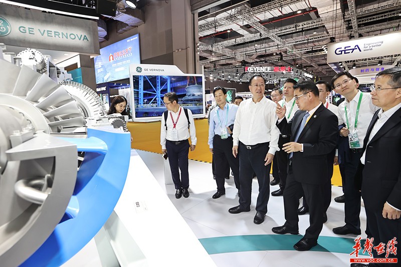 在技术装备展区,毛伟明参观了赛莱默、西门子、思爱普、GE集团、三菱电机、卡特彼勒、罗克韦尔自动化、NACHI(不二越)等企业参展装备,详细了解各家在智能制造领域的最新研发成果和市场应用情况等。他说,湖南是制造业大省,形成了3个万亿产业、16个千亿产业、4个国家级先进制造业集群。当前,我们正以“智赋万企”行动为牵引,加快推进制造智能化、企业智慧化、产业数字化。热忱邀请大家考察湖南、投资湖南、深耕湖南,把企业所长与湖南所需结合起来,助力中小企业数字化转型和专精特新发展,加速迈向高端化、智能化、绿色化。