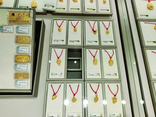 该店店长朱女士表示,金店这段时间明显热闹很多,店员也有些忙不过来。记者观察到,首饰柜里有多款可爱的龙年吊坠,售价在1500元到4000元之间不等,且都是计件出售。“我们正在搞促销活动,买一款龙年吊坠或龙年项链,满1000元可减100元。”