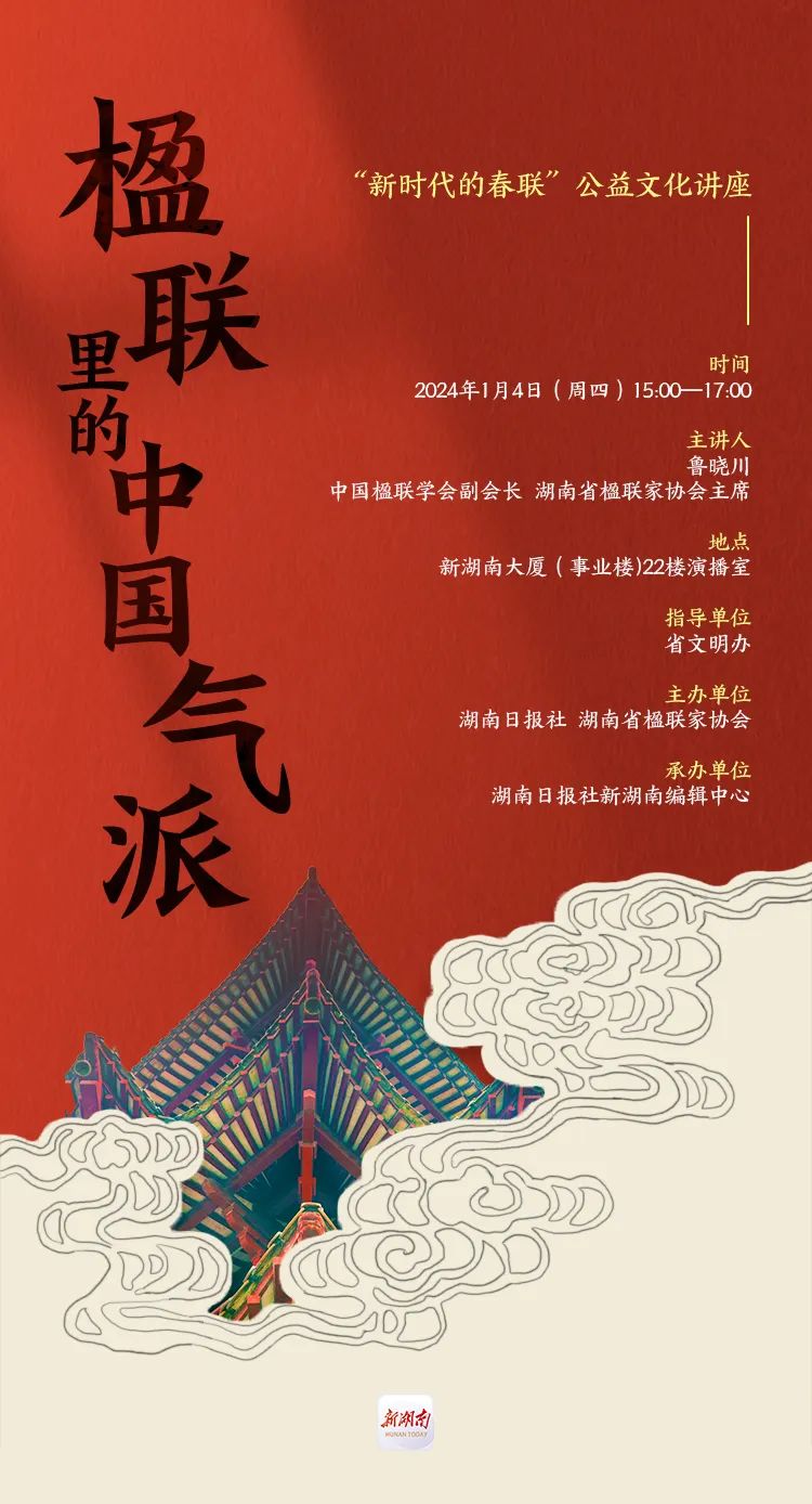 这个湘伴君早打听了,湖南日报社将在新湖南大厦请楹联大家来讲座,线上线下教你如何原创一副符合联律的春联。