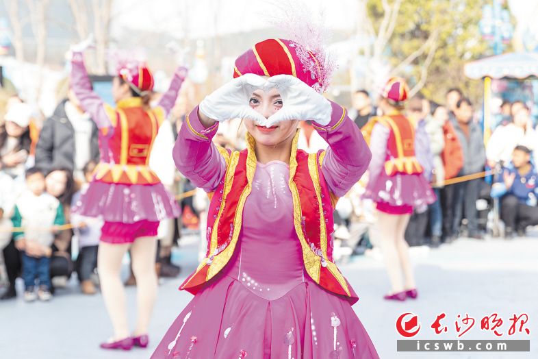 湘江欢乐海洋公园正式开园,演出人员欢迎游客来打卡。