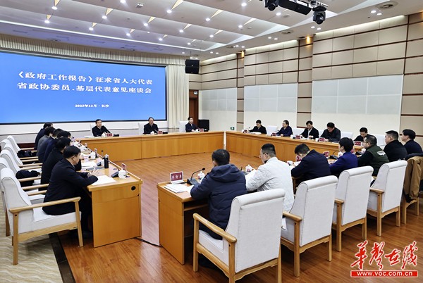 华声在线12月22日讯(全媒体记者 孙敏坚) 22日上午,省委副书记、省长毛伟明主持召开座谈会,听取省人大代表、省政协委员、基层代表对2024年《政府工作报告》的意见建议。他指出,要深学笃行习近平总书记关于湖南工作的重要讲话和指示批示精神,汇集智慧力量、凝聚广泛共识,确保报告更好贯彻中央经济工作会议精神,更好落实省委省政府部署要求,更好体现人民群众所思所盼,凝聚起奋进新征程、建功新时代的强大合力。