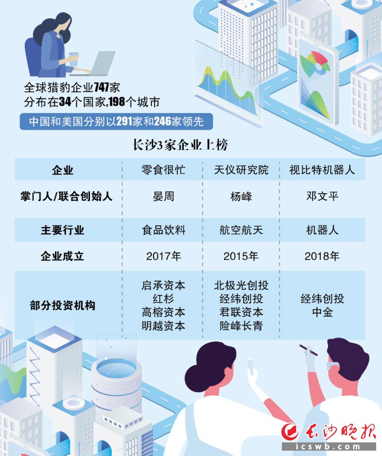 19日,胡润研究院发布《2023胡润全球猎豹企业榜》,这是胡润研究院首次发布“全球猎豹企业榜”。榜单列出了全球成立于2000年之后,5年内最有可能达到独角兽级10亿美元估值的高成长性企业。榜单显示,胡润研究院在全球找到747家猎豹企业,中国以291家排在首位。上海拥有64家猎豹企业,成为全球猎豹企业之都。湖南有长沙的零食很忙、天仪研究院、视比特机器人,衡阳的金凯循环上榜。