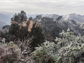 12月16日,张家界国家森林公园迎来下雪。雪虽然不大,但张家界地貌加上雾凇冰挂美景,让前来参观的海内外游客兴奋不已。永州蓝山县云冰山景区,受寒潮影响,景区内满目雾凇冰挂,山舞银蛇、银装素裹,吸引了来自广东湖南等地游客前来打卡。新田县门楼下瑶族乡九峰山迎降雪,雪花扮靓群峰,南国的冰雪童话世界景观让人如置仙境。