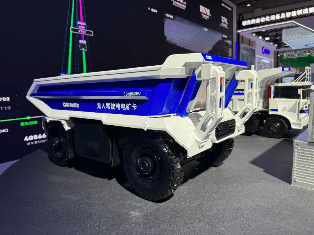 (希迪智驾展出无人驾驶纯电矿卡模型。湖南日报全媒体记者 黄婷婷 摄。)