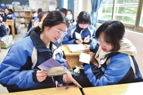 G2204班班主任曾寒平将对学生的寄语,以姓名藏头诗的形式印制在书签上,鼓励孩子们不断努力去实现自己的梦想,在学习和生活中保持积极向上的态度。不仅如此,曾寒平透露,班上的同学们有3种高考科目选科组合,她也想通过类似有趣的活动,帮助同学们加深彼此之间的了解,增强班级凝聚力。