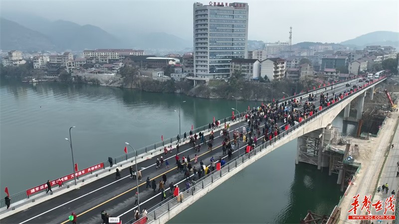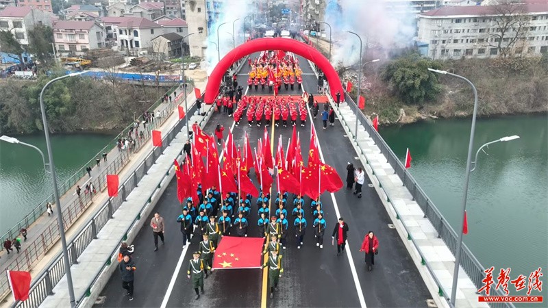 华声在线1月29日讯(通讯员 周红波 彭丽丽)一桥架两岸,沅水添通途。近日,溆浦县大江口沅江大桥上,人山人海,锣鼓喧天,热闹非凡,群众期盼关注的G354国道大江口沅江大桥正式竣工通车。当天天刚亮,沿岸早早排起了长龙,热情的群众手持彩旗,欢呼雀跃,纷纷涌向大桥,迫不及待地想要体验这全新的交通动脉。