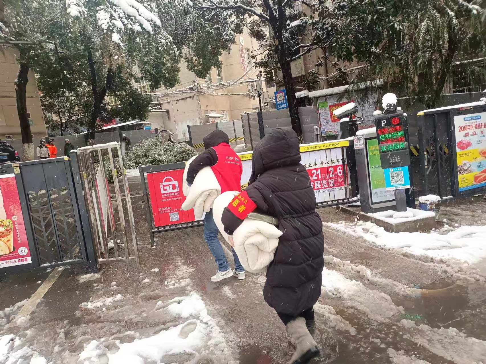 由于辖区内的线材厂宿舍是城市更新片区,目前虽私房已基本腾房完毕,但还有公房居民暂未搬离,其中就有独居老人。大雪之下,老人们的健康牵动着志愿者们的心。志愿者们一早便抱着两床厚棉被送到独居老人家中,进行看望慰问。“下雪了不方便,太冷了您就少出门,有什么想买的或者其他事情就跟我们联系。”志愿者们拉着老人的手说。