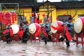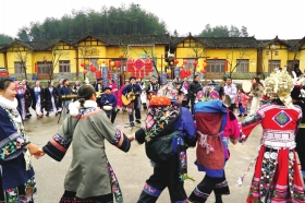 乡亲们跳起了自己的原创苗鼓舞。