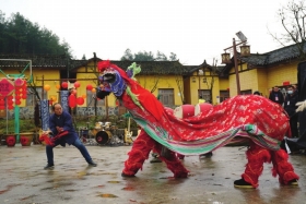 湘西凤凰县腊尔山镇,村民们表演了湘西苗寨的传统民俗活动舞狮。