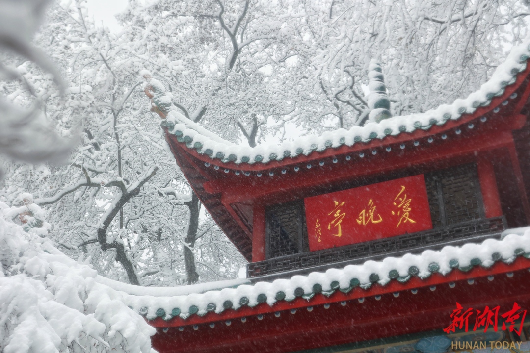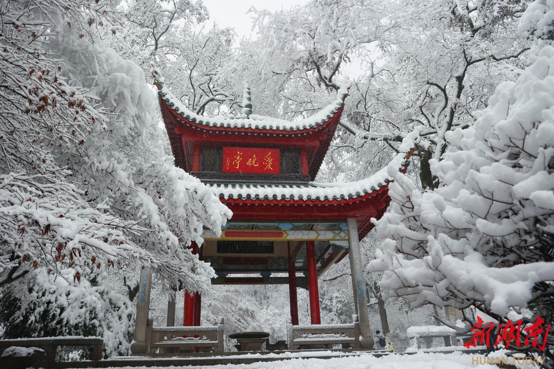 (1月22日,长沙岳麓山爱晚亭雪景。李梦 摄)