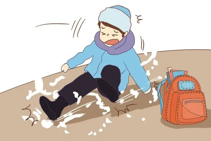 雪天路面湿滑,摔伤是比较多见的。减少不必要的出行,确需出门行走时要穿防滑鞋,尽量选择没有结冰的路面。行走时建议重心放低,最好屈着腿,集中精力,不看手机。行走时稍微外八字,腿不要分太开,和肩关节同宽。小步慢走,交替蹭行,不要急转弯或者突然停下来。走路时,双手不要放在口袋里,双手在两侧来回摆动可以保持身体平衡。骑车出行时,先给轮胎放点气,增加轮胎与地面的摩擦。
