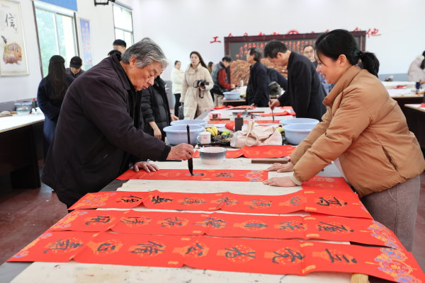 书画艺术家挥毫泼墨,创作春联、“福”字与字画。湖南日报全媒体记者 张京明 摄